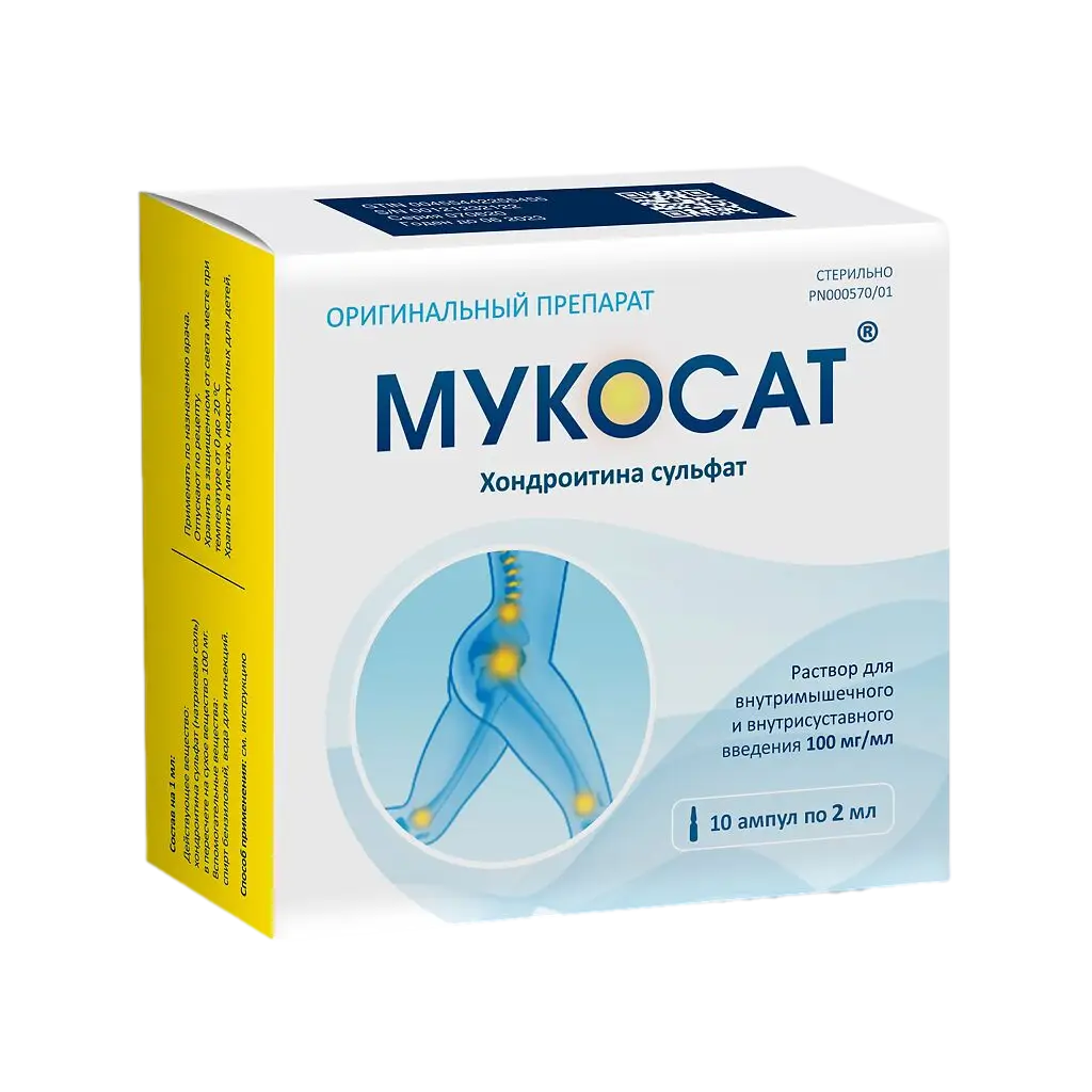 МУКОСАТ РАСТВОР ДЛЯ В/М И В / СУСТАВНОГО ВВЕД 100 МГ/МЛ 2 МЛ 10 ШТ
